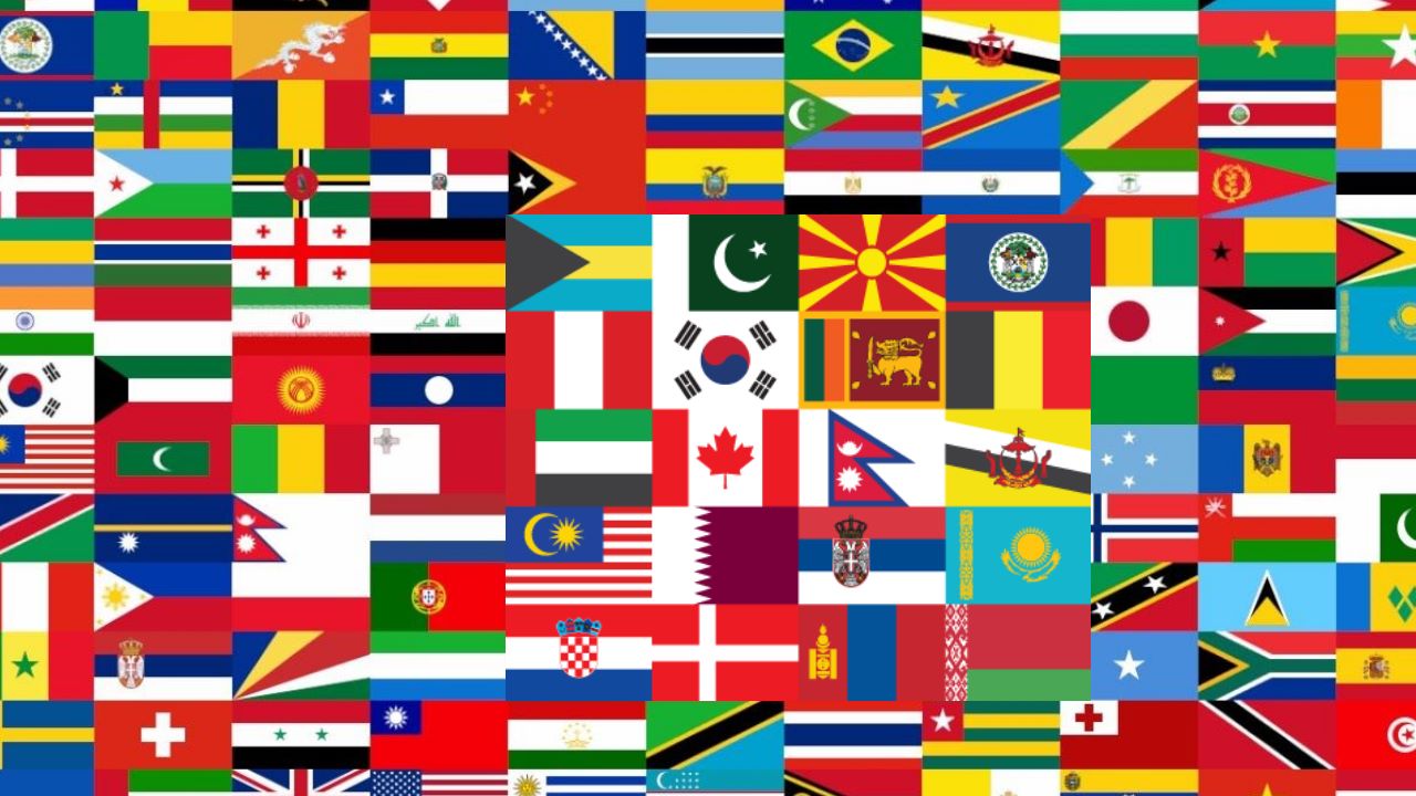 Bei jedem Knopfdruck werden zufällig ausgewählte Hymnen und Landesfahnen von Wikipedia geladen.
